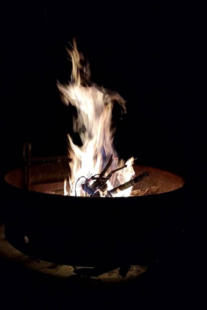 As night fell, another camp fire and music, talking to my “neighbors” near my site and watching people walking and kids play- overall, it was a nice evening. But the reports of falling temps started coming in, and it wasn’t going to be as nice as it had been the night before. Discussions revolved around the below freezing temps, and I decided to grab another layer to put on and headed to the restrooms to get dressed. Others were there doing the same thing, and the talk was the same- We’re going to freeze tonight! I felt bad for the several groups of young people that were there camping in tents.