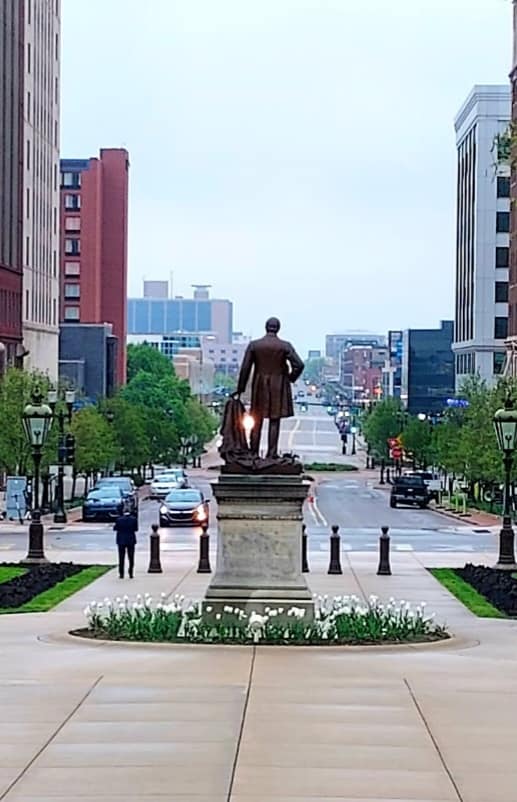Birds-eye view up Michigan Avenue from the state capitol